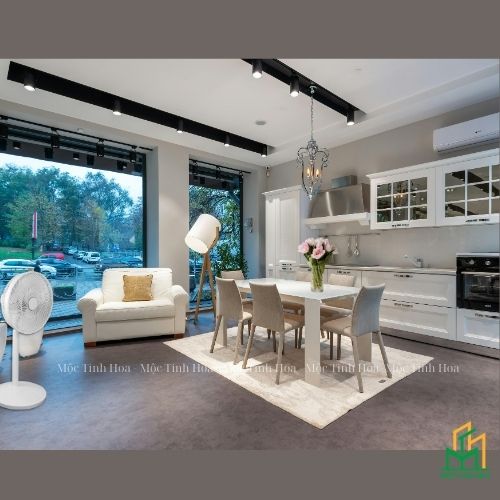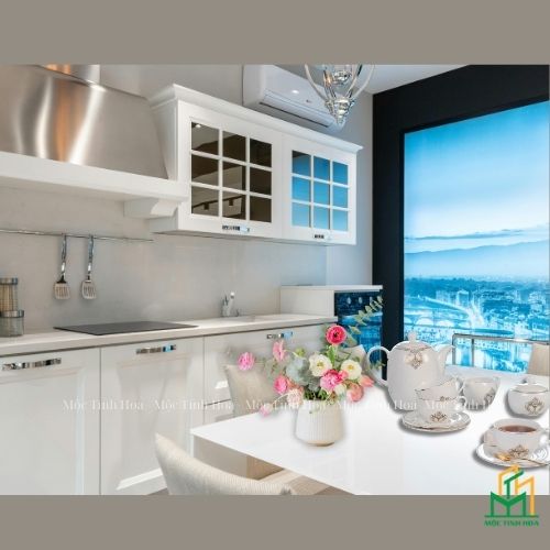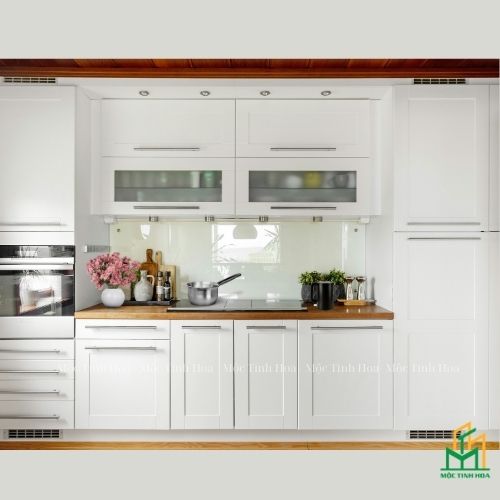 Mẫu tủ bếp Inox cánh kính cường lực CKCL13 – Tủ bếp chữ I, hiện đại