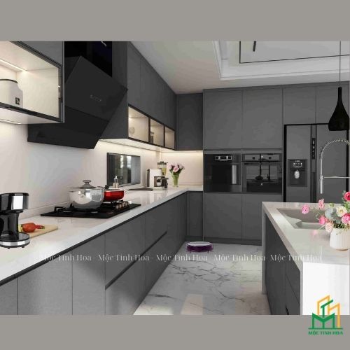 Mẫu tủ bếp nhựa cánh Laminate TBNL02 – Tủ bếp chữ I, hiện đại