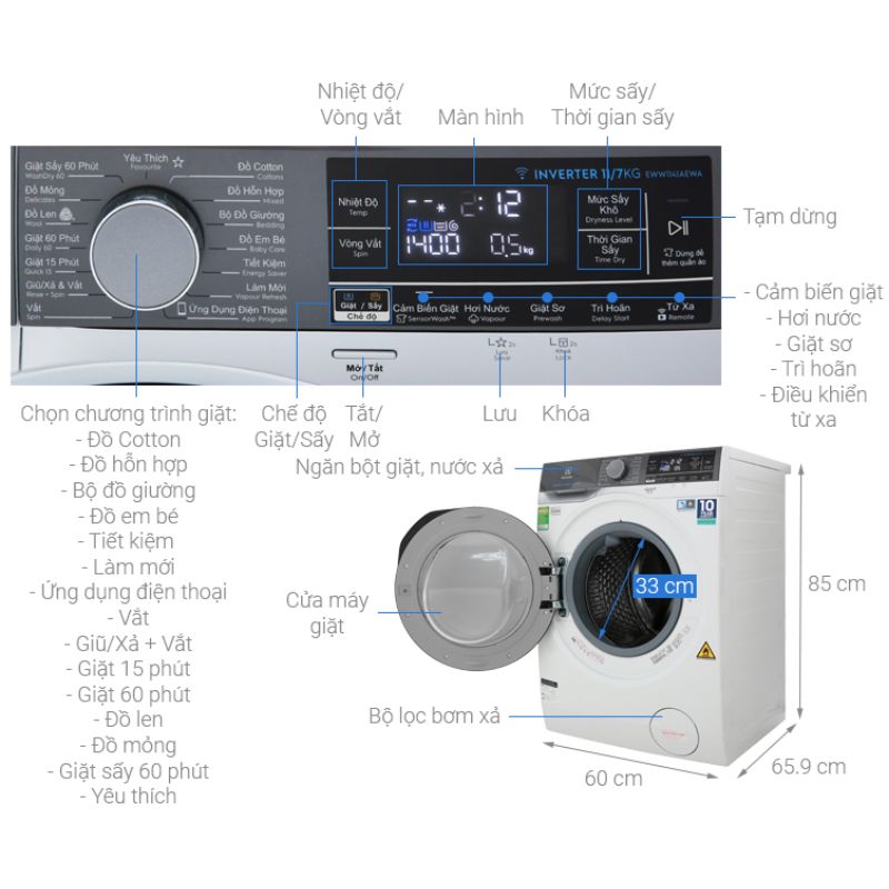 Thông số kĩ thuật của máy giặt sấy EWW1141AEWA
