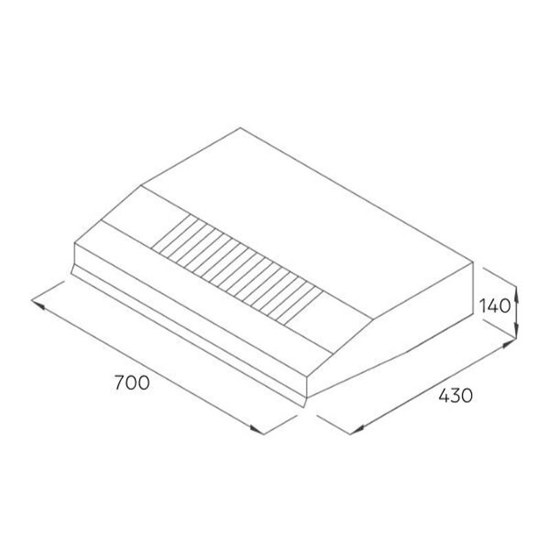 Hình ảnh kích thước máy hút mùi âm tủ tuần hoàn Pramie CH9B-700 Air