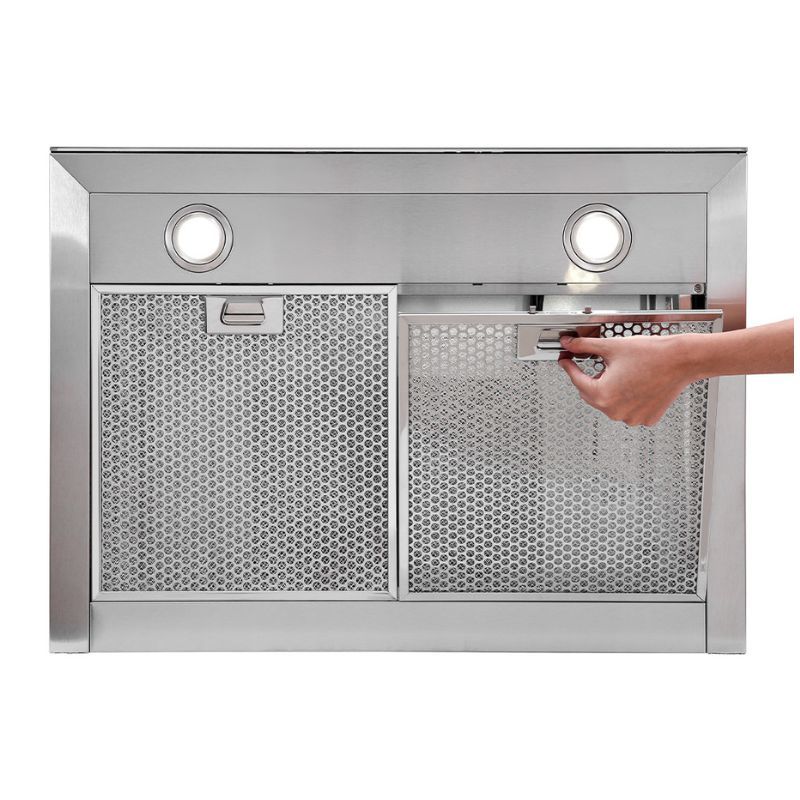 - Sử dụng lưới lọc tháo rời bằng chất liệu nhôm và inox giúp lọc sạch dầu mỡ hiệu quả, tiện vệ sinh sau khi sử dụng.