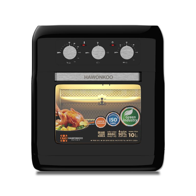 - Dung tích 10L: Hawonkoo AFH-100-TL sở hữu dung tích 10L có thể nướng được các thực phẩm có kích thước lớn như ngan, gà, vịt nguyên con. Cánh cửa lò có thiết kế với 2 lớp kính chịu lực, chịu nhiệt có thể quan sát toàn bộ khoang lò trong quá trình hoạt động mà không làm ảnh hưởng đến hiệu suất gia nhiệt và an toàn cho người dùng. Khoang nướng thiết kế rộng rãi phù hợp cho gia đình từ 4-6 người và những bữa tiệc gia đình thân mật.