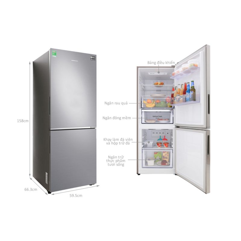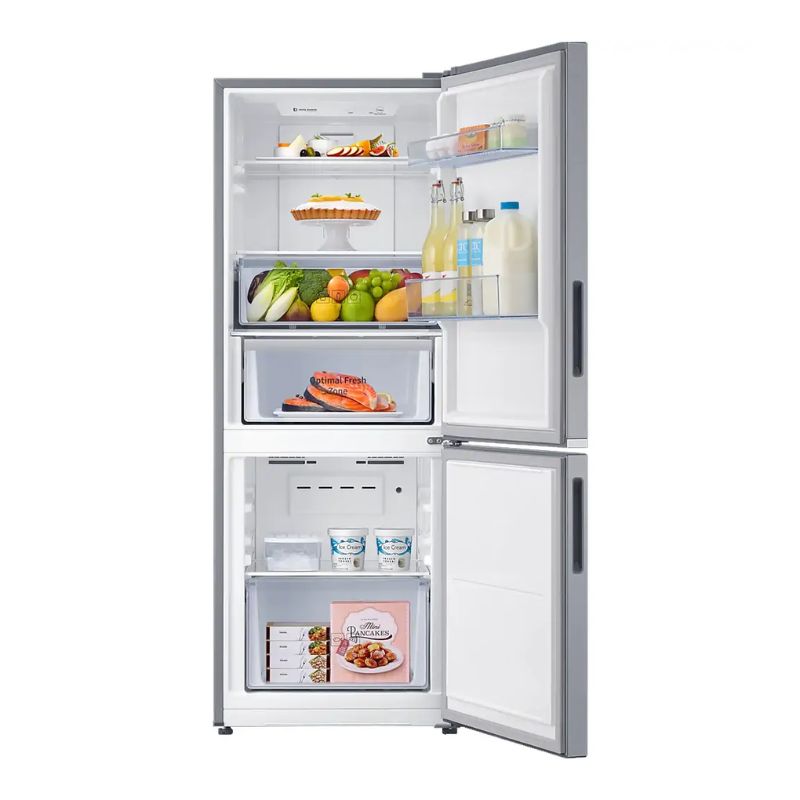 - Thiết kế phẳng tinh giản: Tủ Lạnh Samsung Inverter 280 Lít RB27N4010S8 là dòng tủ lạnh 2 cửa ngăn đông dưới nổi bật với thiết kế phẳng tinh giản đẳng cấp Châu Âu cùng gam màu bạc sang trọng giúp mang lại vẻ đẹp tao nhã và tô điểm thêm cho không gian bếp của gia đình bạn. Đây là chiếc tủ lạnh Samsung thế hệ mới có đường cắt tinh xảo cùng kích thước lý tưởng 158 x 59.5 x 66.3cm (cao x rộng x sâu) giúp người dùng có thể dễ dàng lấy thực phẩm mà không cần phải khom cúi quá nhiều. Bên cạnh đó, cửa tủ lạnh được làm từ chất liệu sơn tĩnh điện cũng giúp cho thiết bị có khả năng chịu nhiệt và chống lại các tác nhân ăn mòn tốt hơn. Tủ Lạnh Samsung Inverter RB27N4010S8 có dung tích 280 lít và hoàn toàn phù hợp để đáp ứng nhu cầu dự trữ thực phẩm của những gia đình có từ 2-3 thành viên.