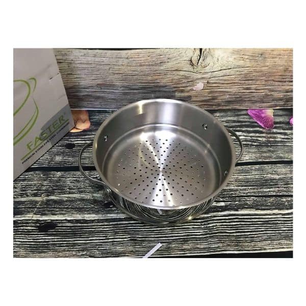 - Xửng hấp Faster của chúng tôi được làm toàn bộ từ inox 304 cao cấp hay còn được biết đến với cái tên thép không gỉ 18/10. Chất liệu này có độ bền cao, không bị mài mòn và oxi hóa, đảm bảo độ sáng bóng cho sản phẩm. Và quan trọng nhất là chất liệu này an toàn tuyệt đối với sức khỏe người tiêu dùng theo tiêu chuẩn của Châu Âu. Như vậy người tiêu dùng sẽ không phải đắn đo một chút nào về độ an toàn của xửng hấp khi chọn mua sản phẩm của chúng tôi